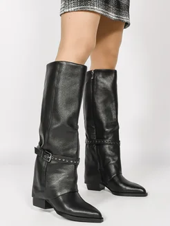 Сапоги казаки демисезонные на каблуке натуральная кожа