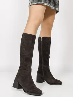 Сапоги зимние трубы на каблуке натуральная замша