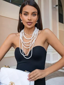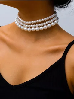 Украшение на шею многоярусные жемчужные бусы бижутерия