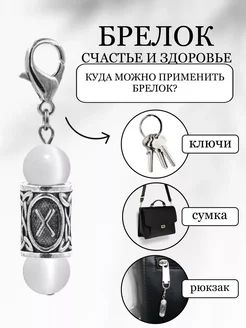 Брелок с руной Гебо и натуральным Кошачьим глазом