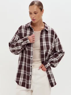 Рубашка в клетку женская розовая оверсайз удлиненная хлопок