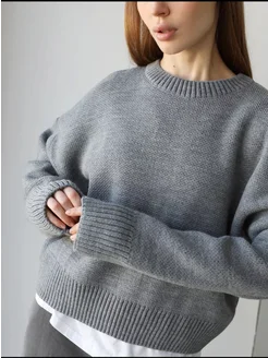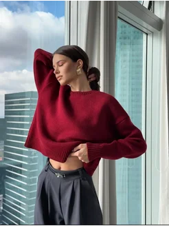 свитер оверсайз вязаный укороченный теплый