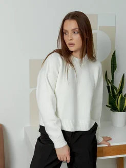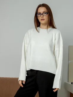 Свитер оверсайз молочный укороченный
