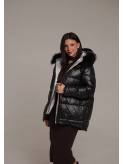 пуховик зимний с натуральным мехом и капюшоном