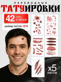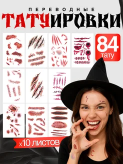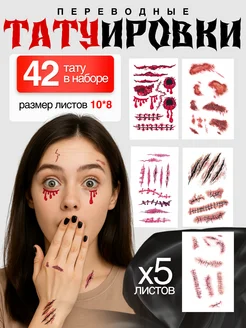 Тату шрамы на Хэллоуин временные переводные порезы