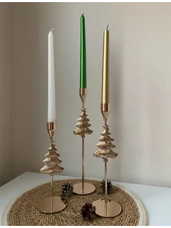Подсвечник Елка золотой новогодний Рождественский, 3 шт