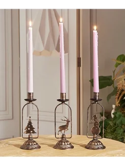 Подсвечники персонажи нового года, Рождества золото, 3 шт