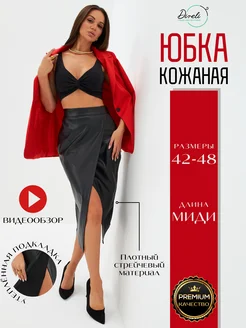 Юбка кожаная миди с разрезом на запах экокожа
