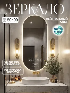 Зеркало с подсветкой и часами настенное в ванную 50х90 см