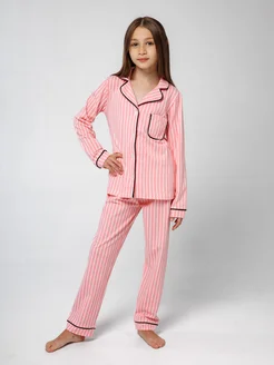 Пижама со штанами и рубашкой трикотажная хлопок в полоску