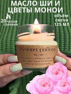 Свеча 125 мл с деревянным фитилем с маслом ши и цветы монои