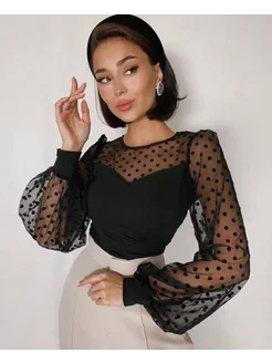 Рубашка офисная блузка с длинным кружевным рукавом нарядная