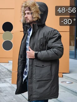 Пуховик зимний короткий с капюшоном и мехом Куртка зимняя