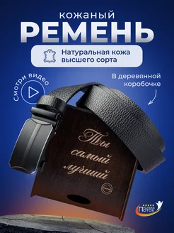 Ремень натуральная кожа черный для джинс и брюк в подарок