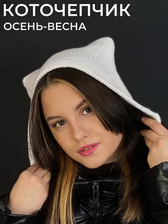 Шапка y2k чепчик на завязках с ушками кошки пушистый теплый