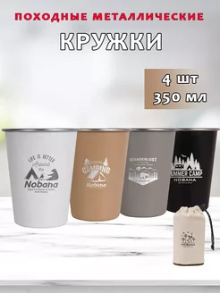 Походные чашки из нержавеющей стали, 350мл, 4 шт