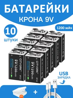 батарейки крона 9V(6F22) 1200mAh Li-ion с зарядкой USB, 10шт