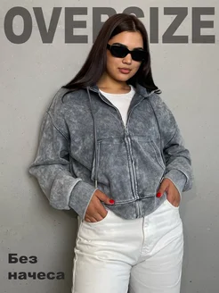 Зип худи оверсайз женская с капюшоном на замке варенка