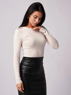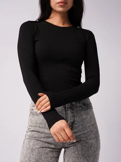 Лонгслив базовый облегающий в рубчик с длинным рукавом