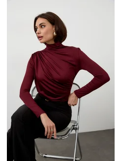 Лонгслив с драпировкой облегающий в офис нарядный