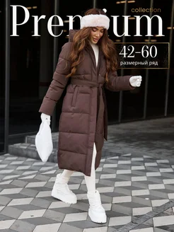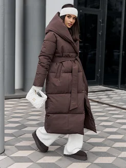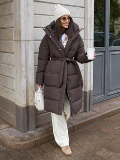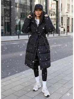 Пуховик зимний длинный с поясом