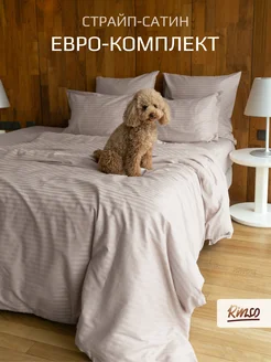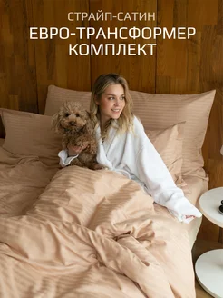 Постельное белье евро трансформер бежевое страйп сатин