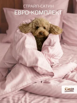 Постельное белье евро страйп-сатин премиум розовое