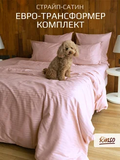 Постельное белье евро трансф розовый страйп сатин премиум
