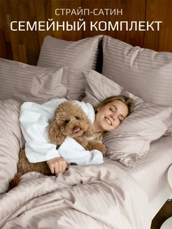 Постельное белье семейное бежевое страйп сатин премиум