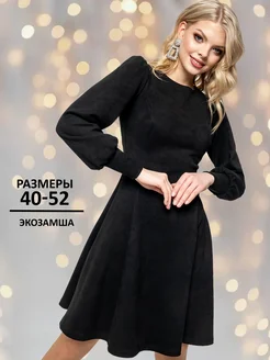 Платье замшевое короткое черное офисное деловое