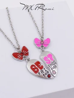Подвески парные на цепочке Сердце Best Friends с бантиком
