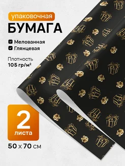 Бумага упаковочная черная для подарков 2 рулона 50x70 см