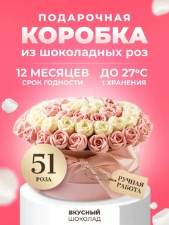 Съедобный букет конфет подарочный, шоколадные розы 51 шт