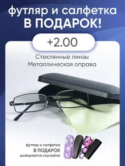 Очки для зрения +2.00 корригирующие стеклянные линзы
