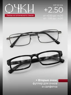 Очки для зрения +2.50 корригирующие стеклянные линзы