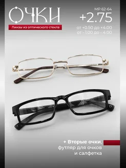 Очки для зрения +2.75 корригирующие стеклянные линзы