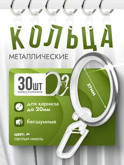 Кольца для штор бесшумные с крючками 30 шт