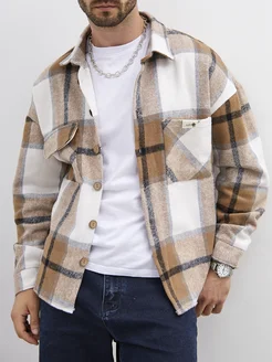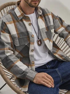 Теплая рубашка в клетку с длинным рукавом оверсайз