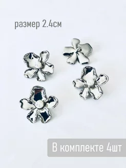 Пуговицы Лилия со стразами и жемчугом 24мм. 4 штуки