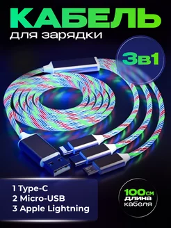 Кабель 3 в 1 для зарядки светящийся iphone Type-c micro usb
