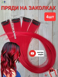 Волосы на заколках накладные цветные 4 шт