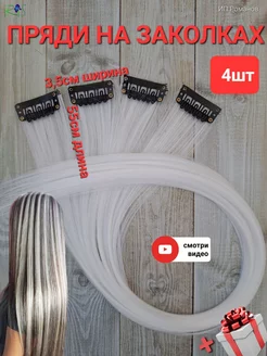 Накладные пряди для волос на заколках. Белые 4 шт