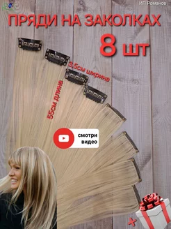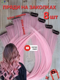 Пряди на заколках для волос накладные цветные 8 шт