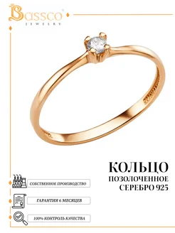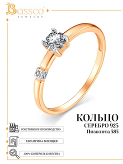 Кольцо серебро 925 позолота ювелирное