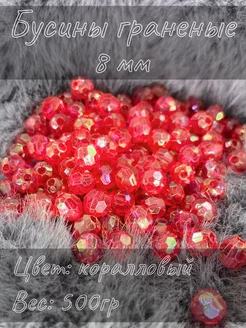 Бусины граненые, 8мм ( прозрачно-коралловый )