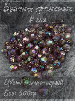 Бусины граненые, 8мм ( темно-серый, перламутр )