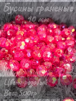 Бусины граненые, 10 мм ( прозрачно-розовый )