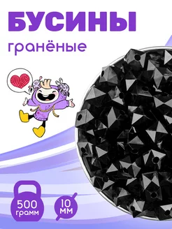 Бусины граненые куб 10 мм уп. 500 гр черный