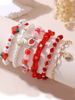 Браслеты бижутерные бантик клубничка бусины цепочка 6 шт