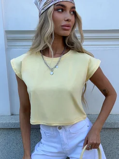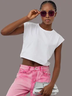 Укороченная футболка кроп топ без рукавов для фитнеса